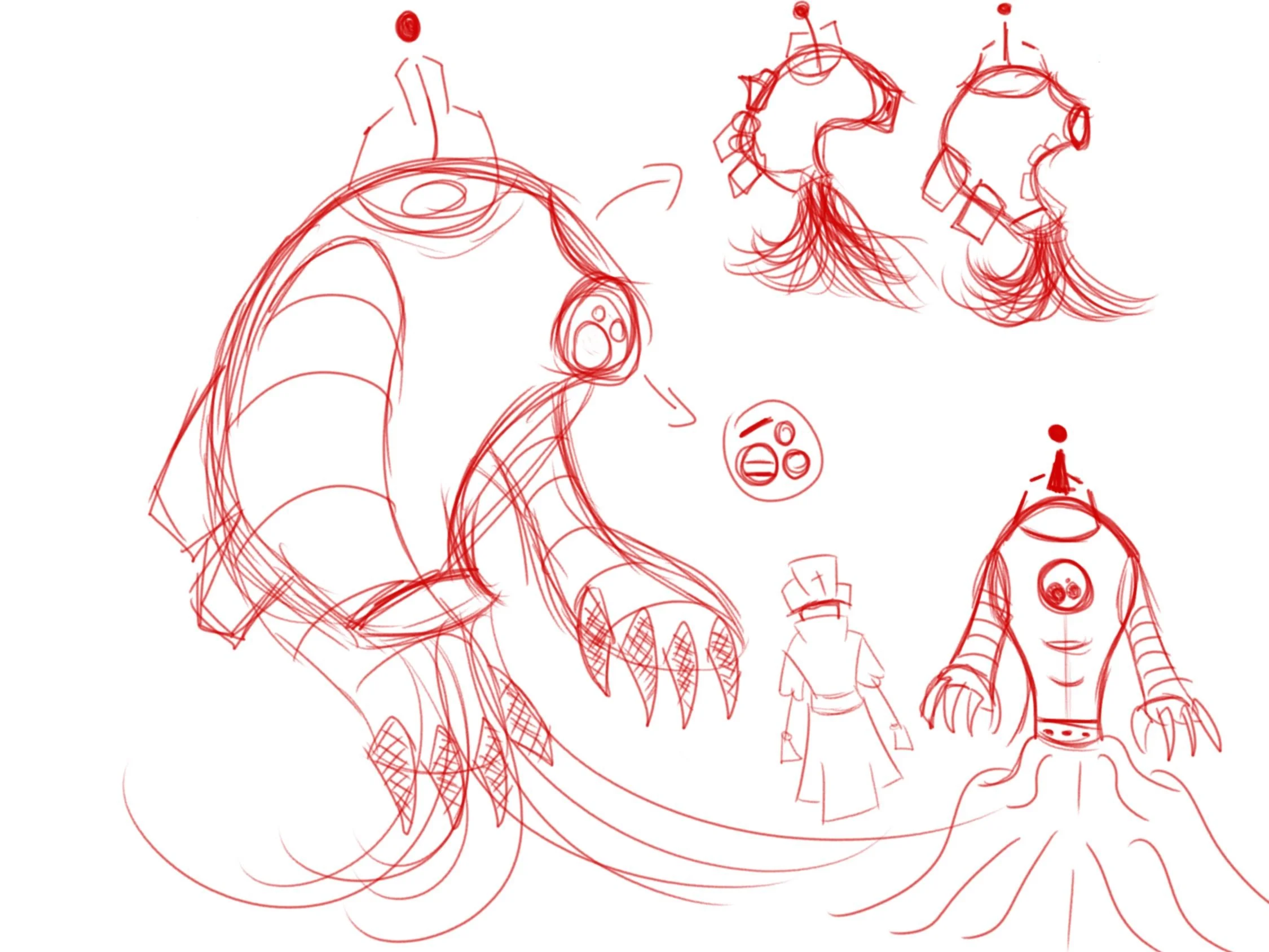A collection of various sketches in different states of completion
